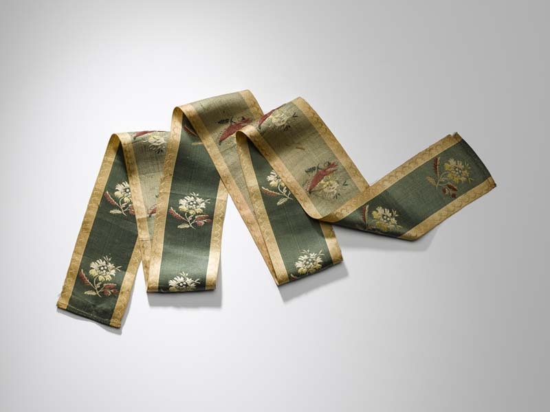 Zijden lint in de kleuren oudroze, groen en creme me...