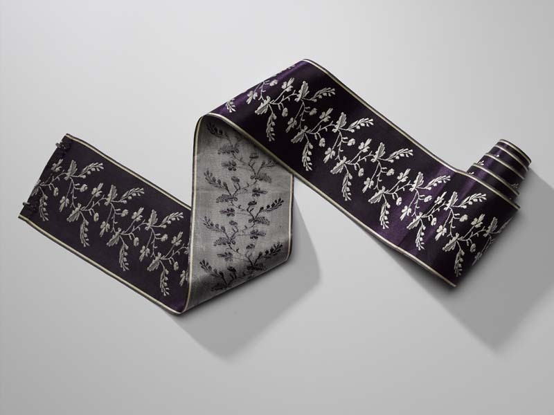 Zijden lint (zonhoedlint) in de kleuren paars en wit