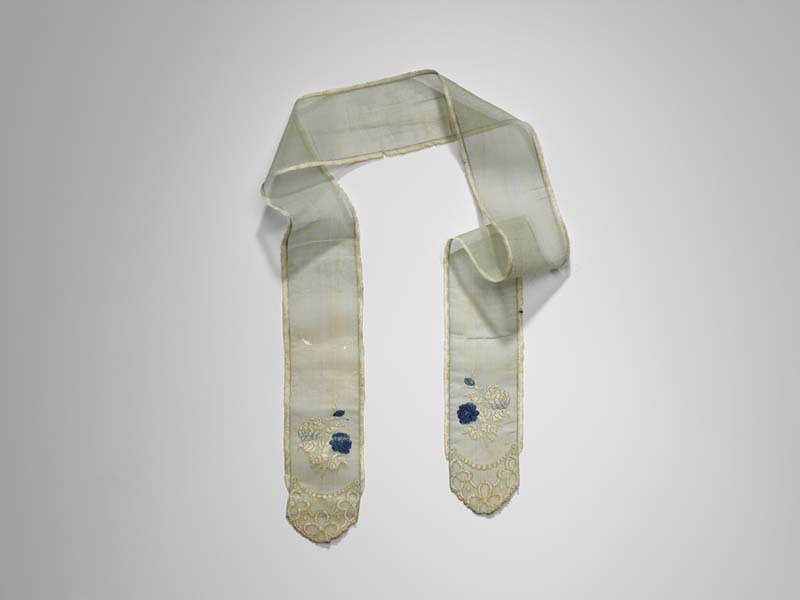 Smalle sjaal van lichtblauwe batist met aan de uitei...