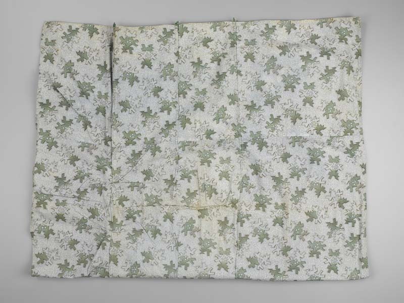 Bedrukt poppedekentje met motieven op witte grond