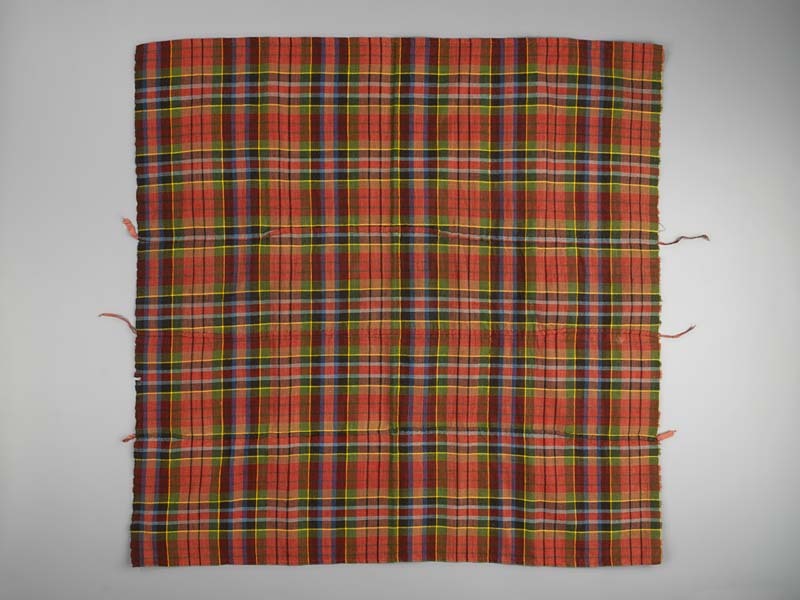 Pakdoek van veelkleurige geruite wol met rood zijden...