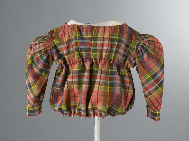 Japonnetje van geruite wol met schapeboutmouwen