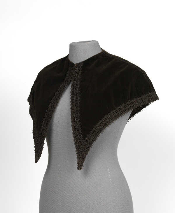 Schouderkraag of pelerine van bruin fluweel afgezet ...
