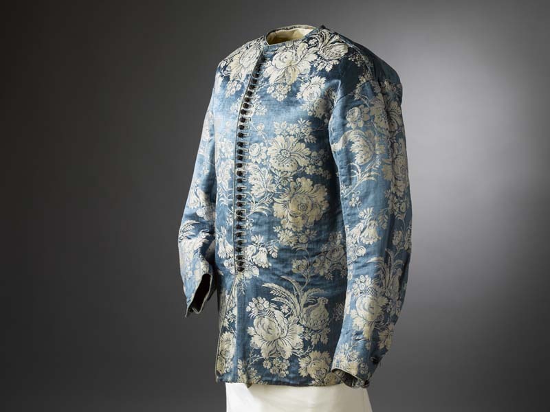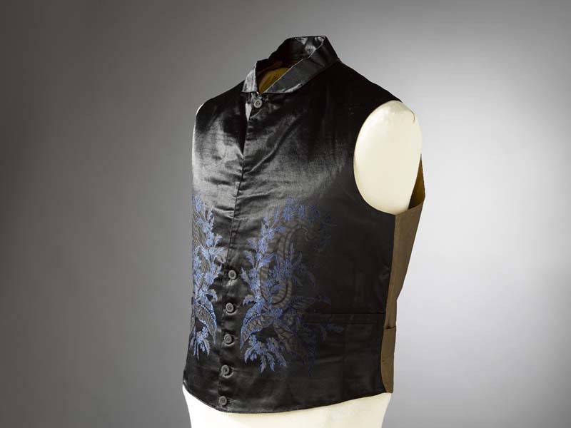 Baeitje of mannenvest van lichtblauw gebloemd satijn...