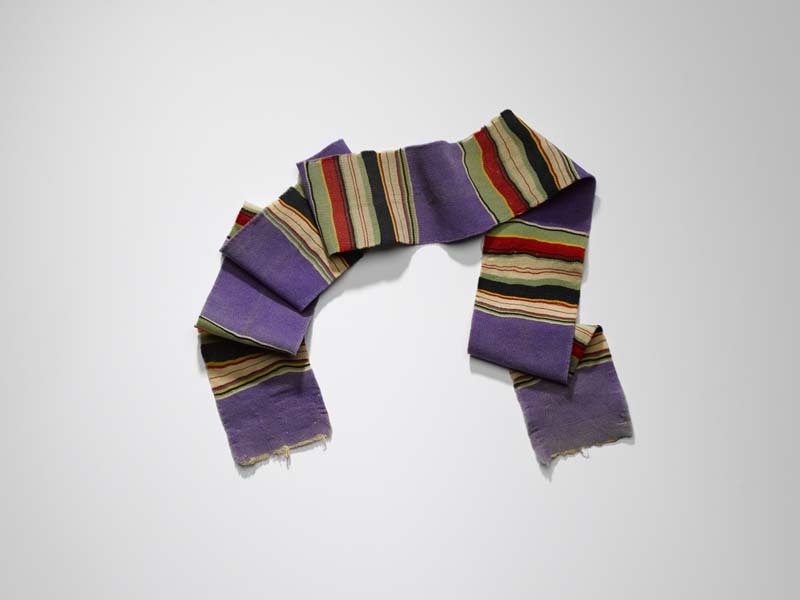 Lint van wol met paarse grond met veelkleurige strepen