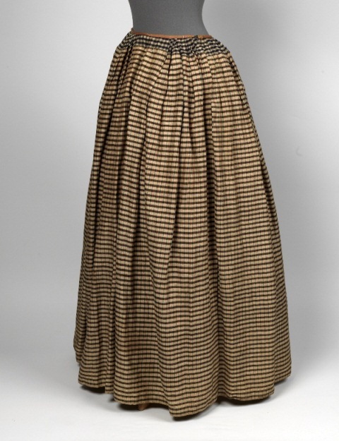 Rok van geruit wit linnen en rood katoen (hikkede), ...