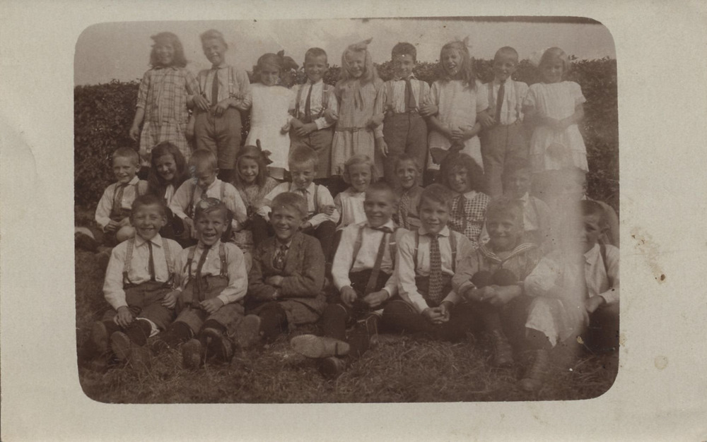 Schoolfoto: christelijke lagere school. Achterste ri...