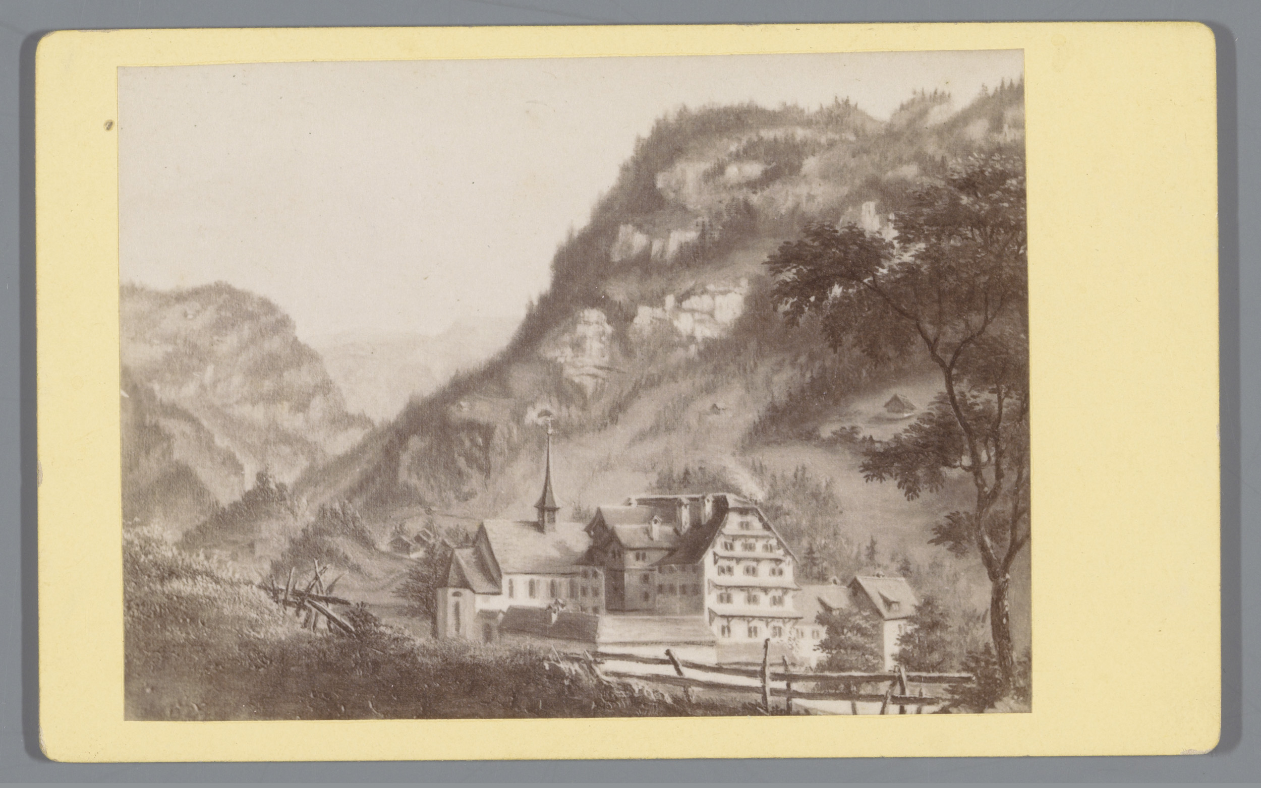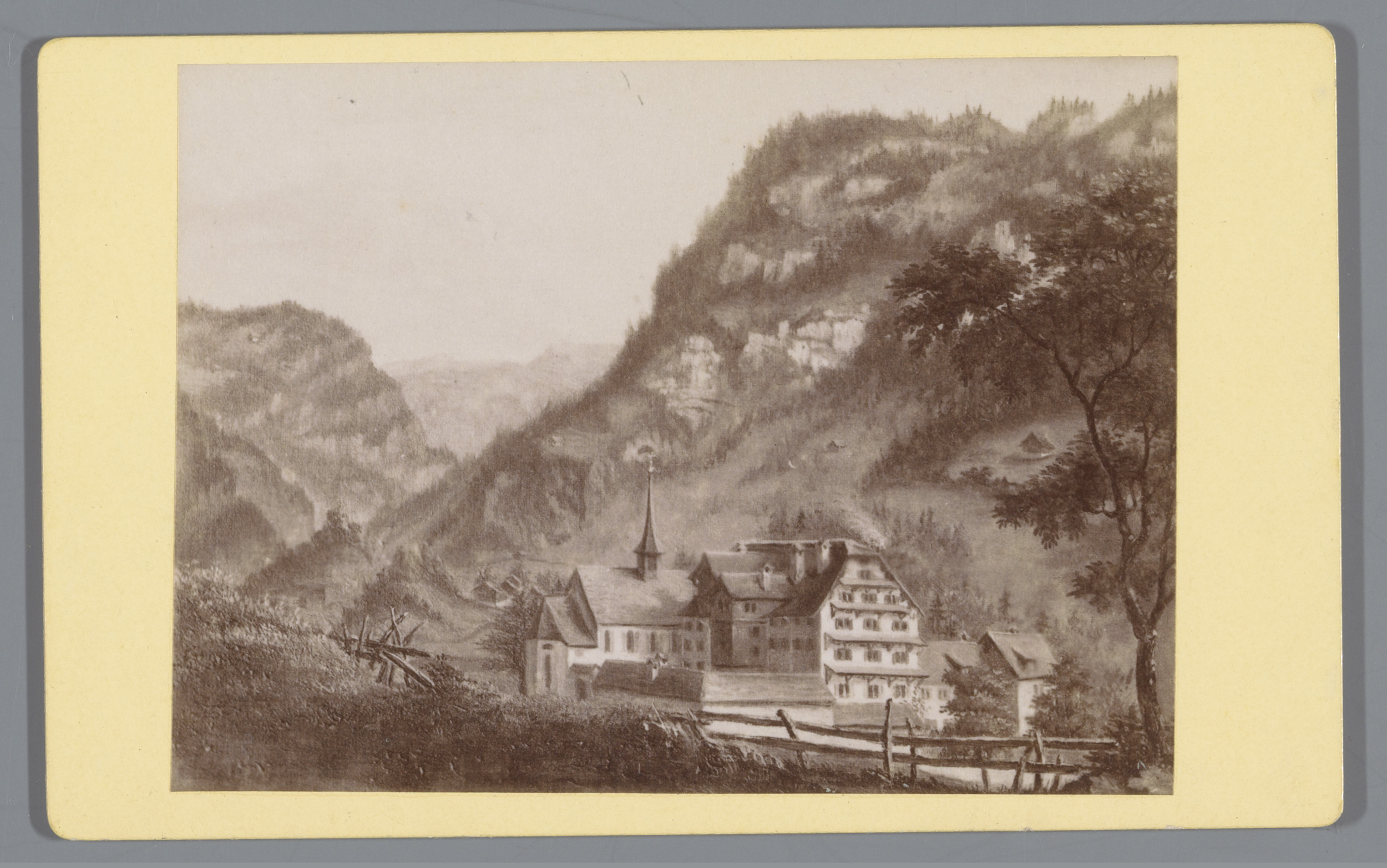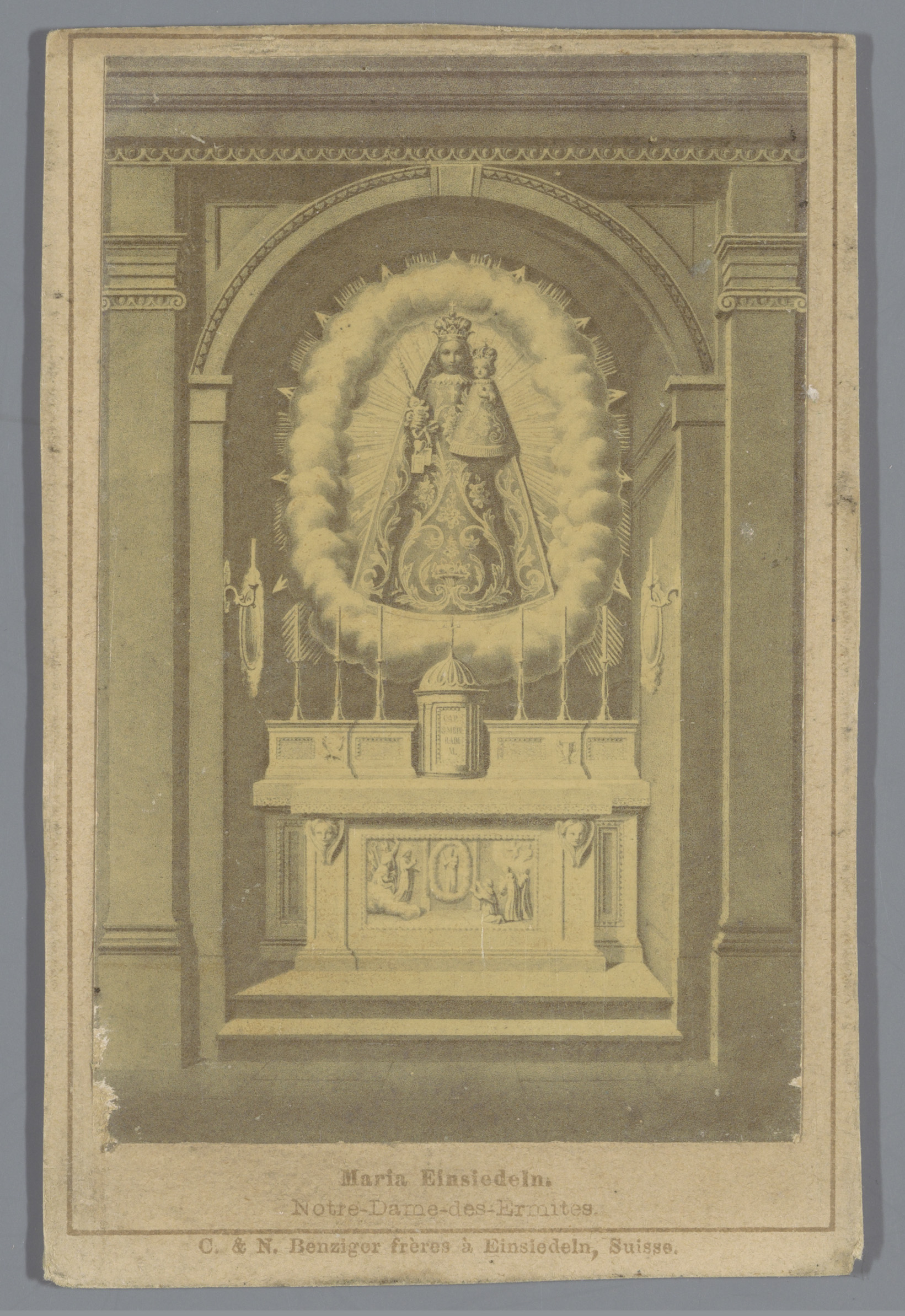 Fotoreproductie van een prent van de genadekapel met...