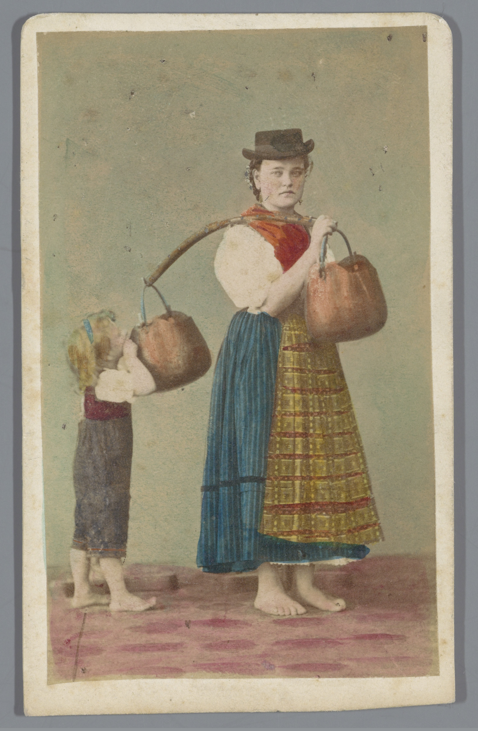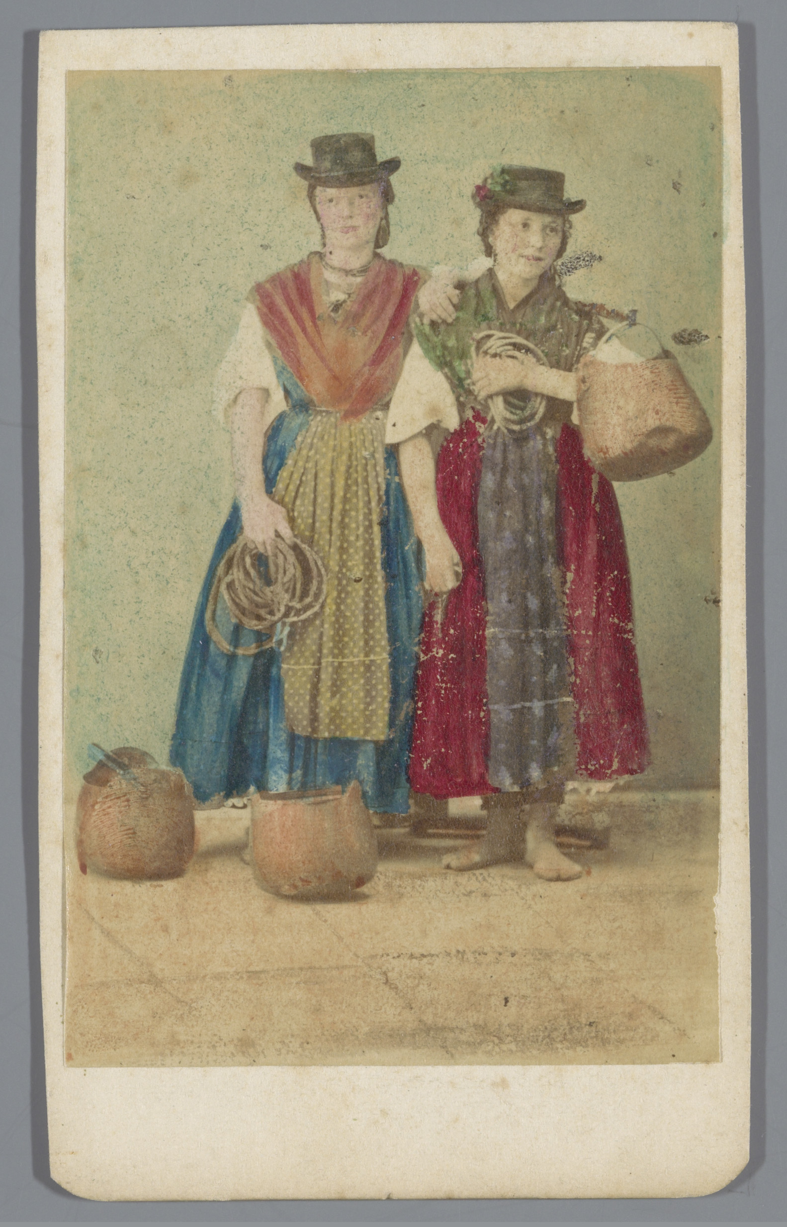 Portret van twee onbekende vrouwen in lokale dracht ...