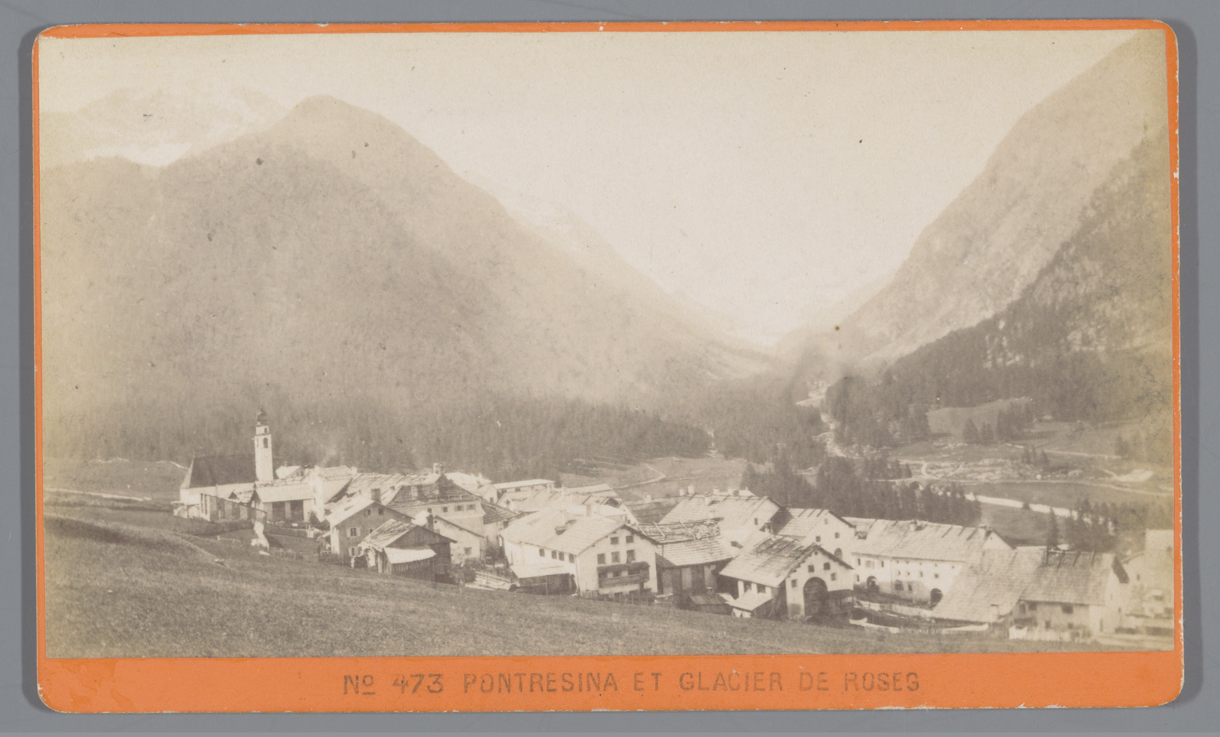 Gezicht op Pontresina en de Roseggletsjer, Zwitserland