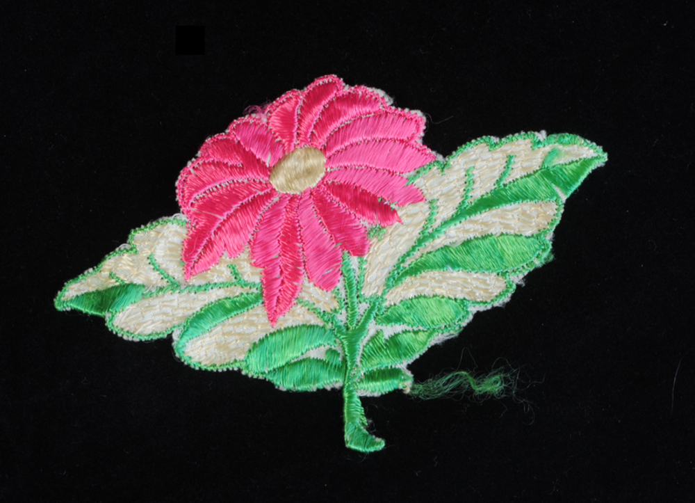 Vaandeltje van stof rood en geborduurd voorstellende...
