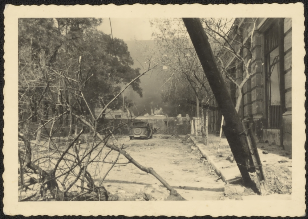 Oorlogsschade in een stad.