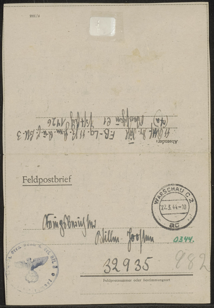 Feldpostbrief Warschau C2 22.3.'44 - 10