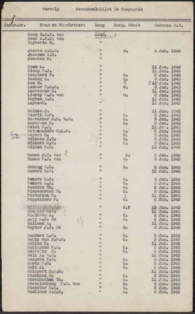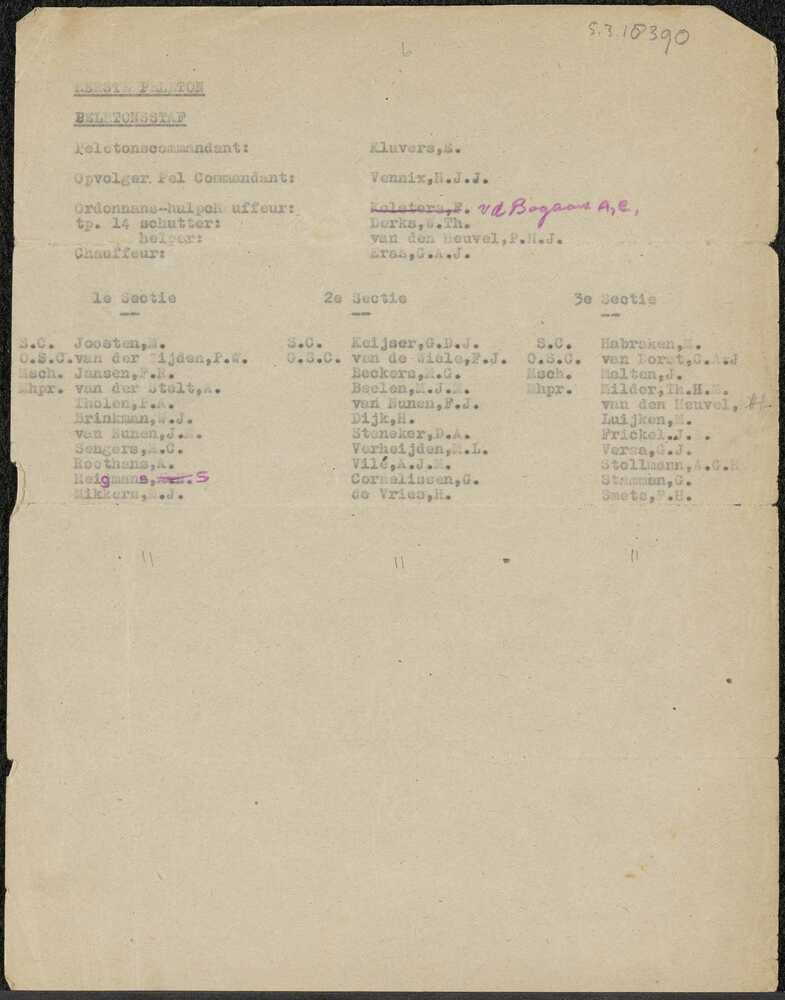Lijst "Personeelslijst 3e Compagnie"