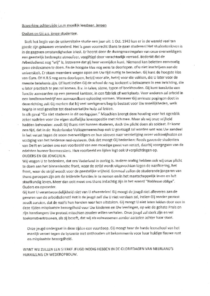 Pamflet Onze Jeugd niet naar de Arbeidsdienst, 1943