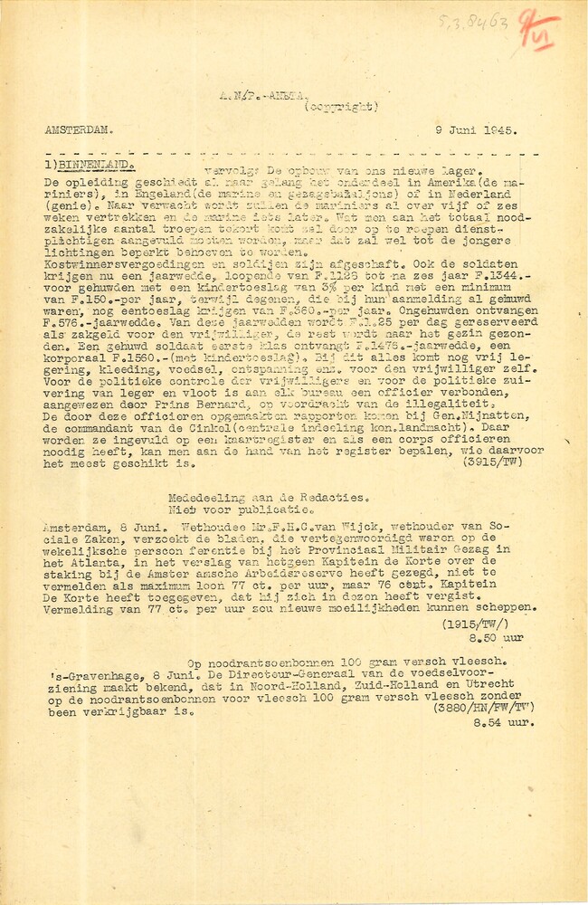 Algemeen Nederlandsch Persbureau, mededelingen, 26 m...