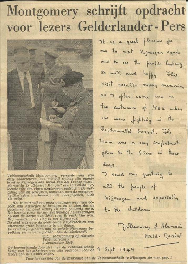 Veldmaarschalk Montgomery schrijft opdracht voor de ...