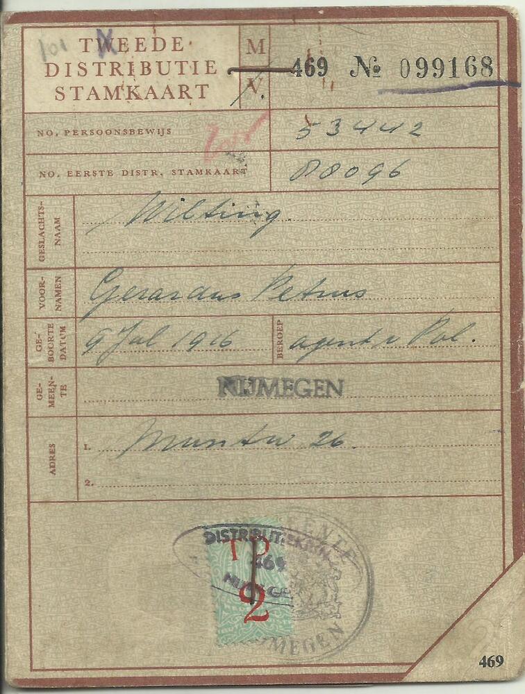 Tweede Distributiestamkaart op naam van Wilting G.P.