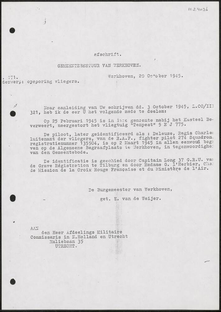 Rapport, Gemeentebestuur Werkhoven, 20 october 1945.
