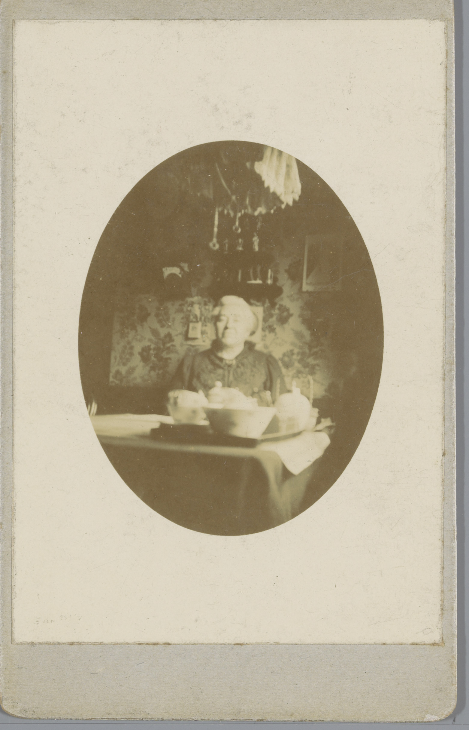 Portret van een onbekende vrouw, zittend achter een ...