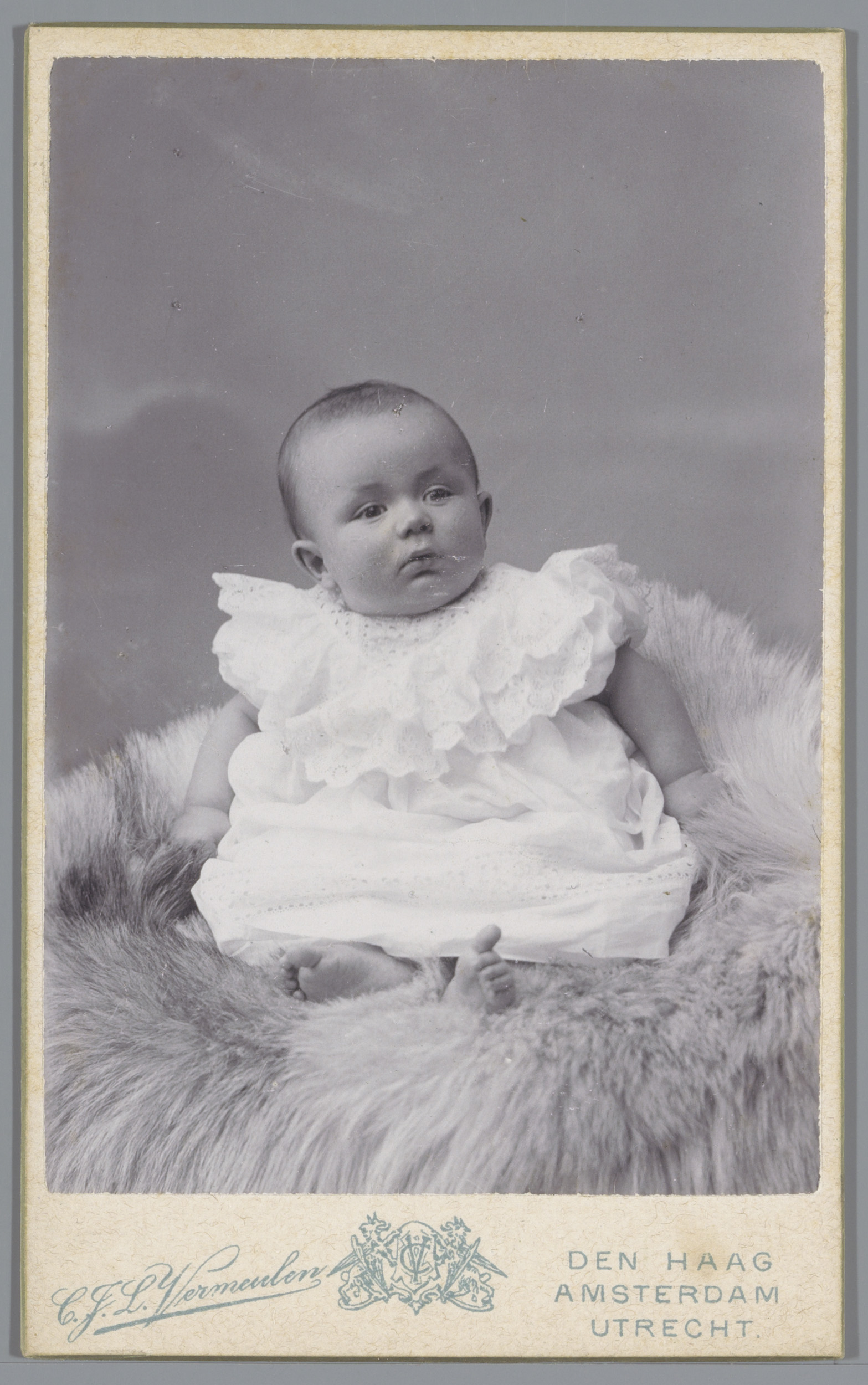 Portret van een onbekende baby op een dierenvel