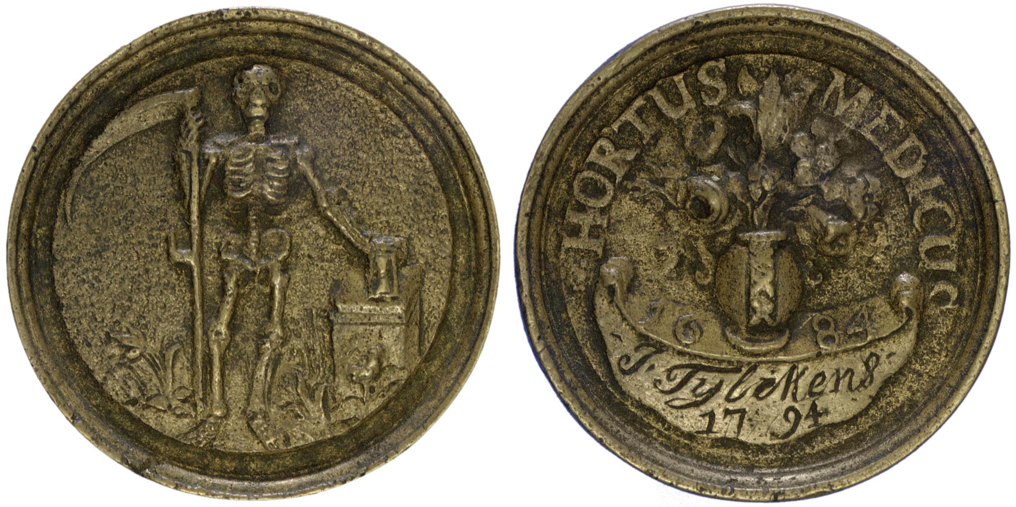 Chirurgijnsgilde toegangspenning Hortus Medicus t.n....