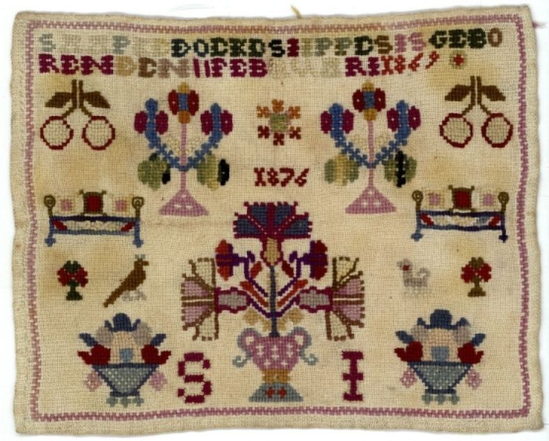 Merkletterlap met schepen, gemerkt A.S. 1866
