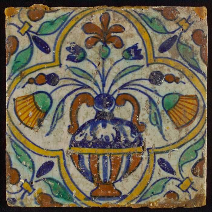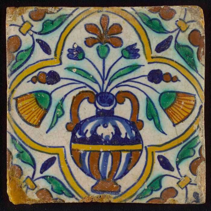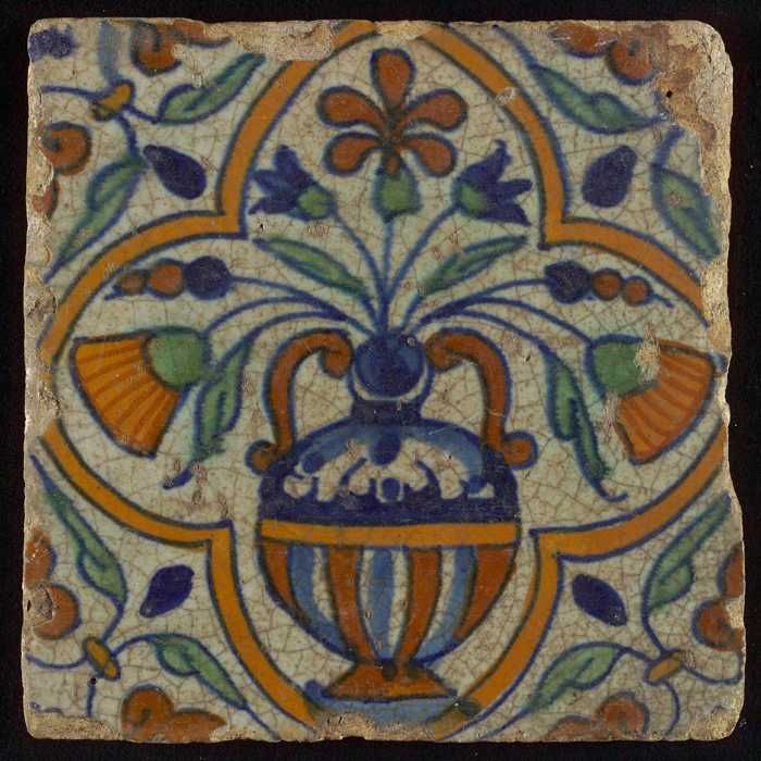 Bloemtegel, polychroom, hoekmotief vleugelblad