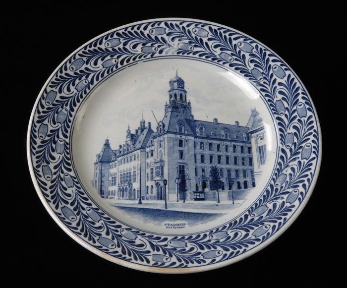 Bordje met voorstelling Stadhuis Rotterdam