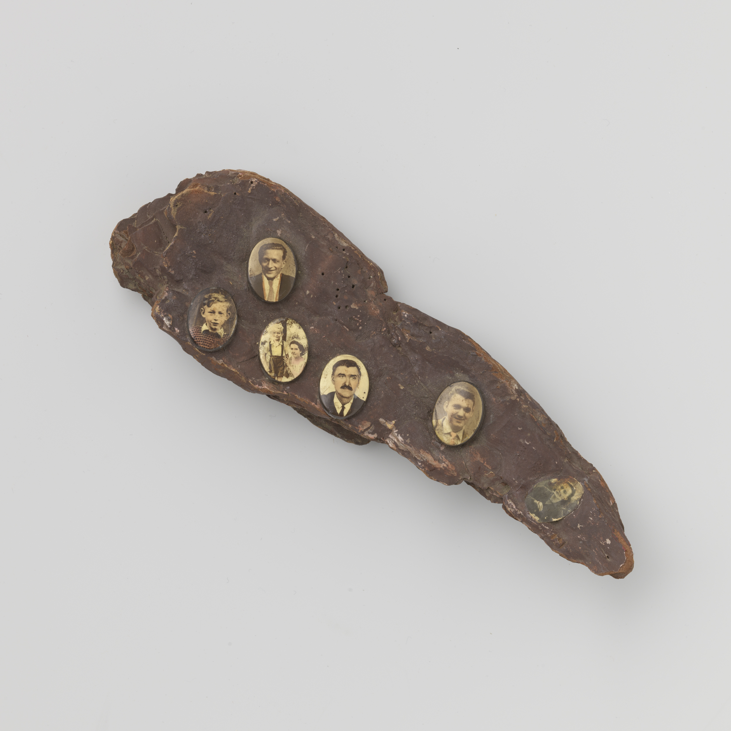 Boomschors met zes portretten van onbekende mensen