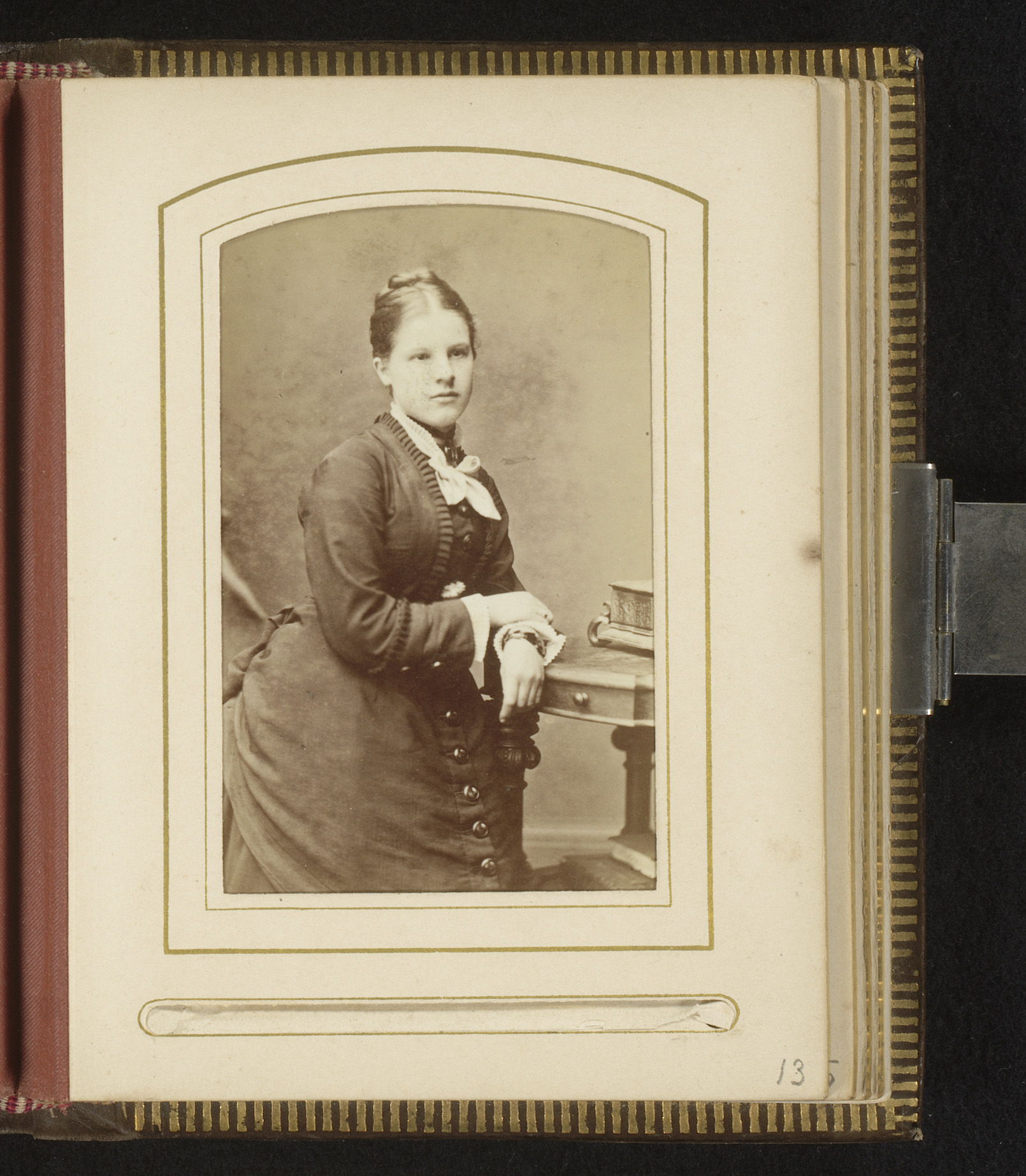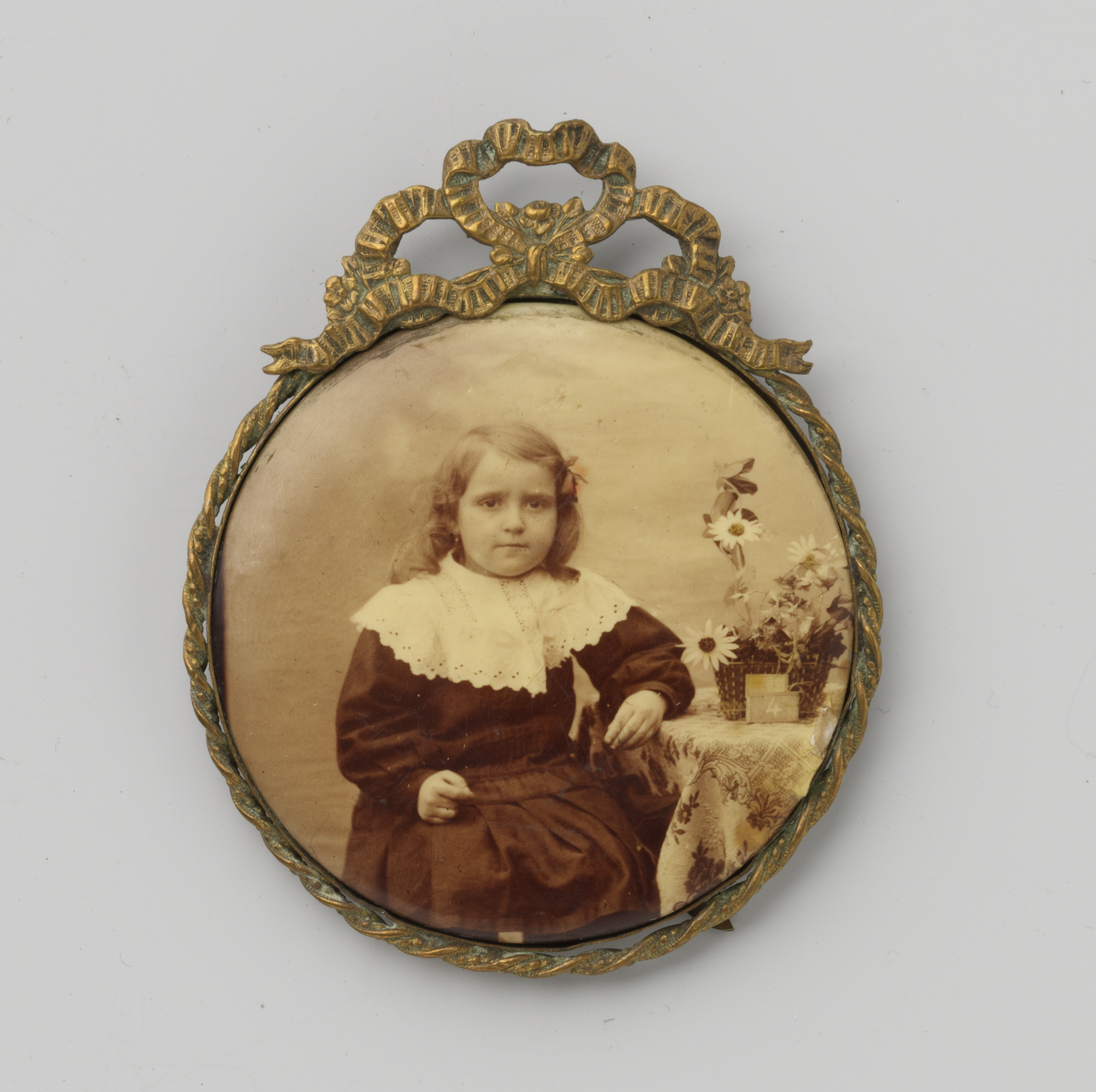 Portret van een onbekend meisje zittend op een tafel