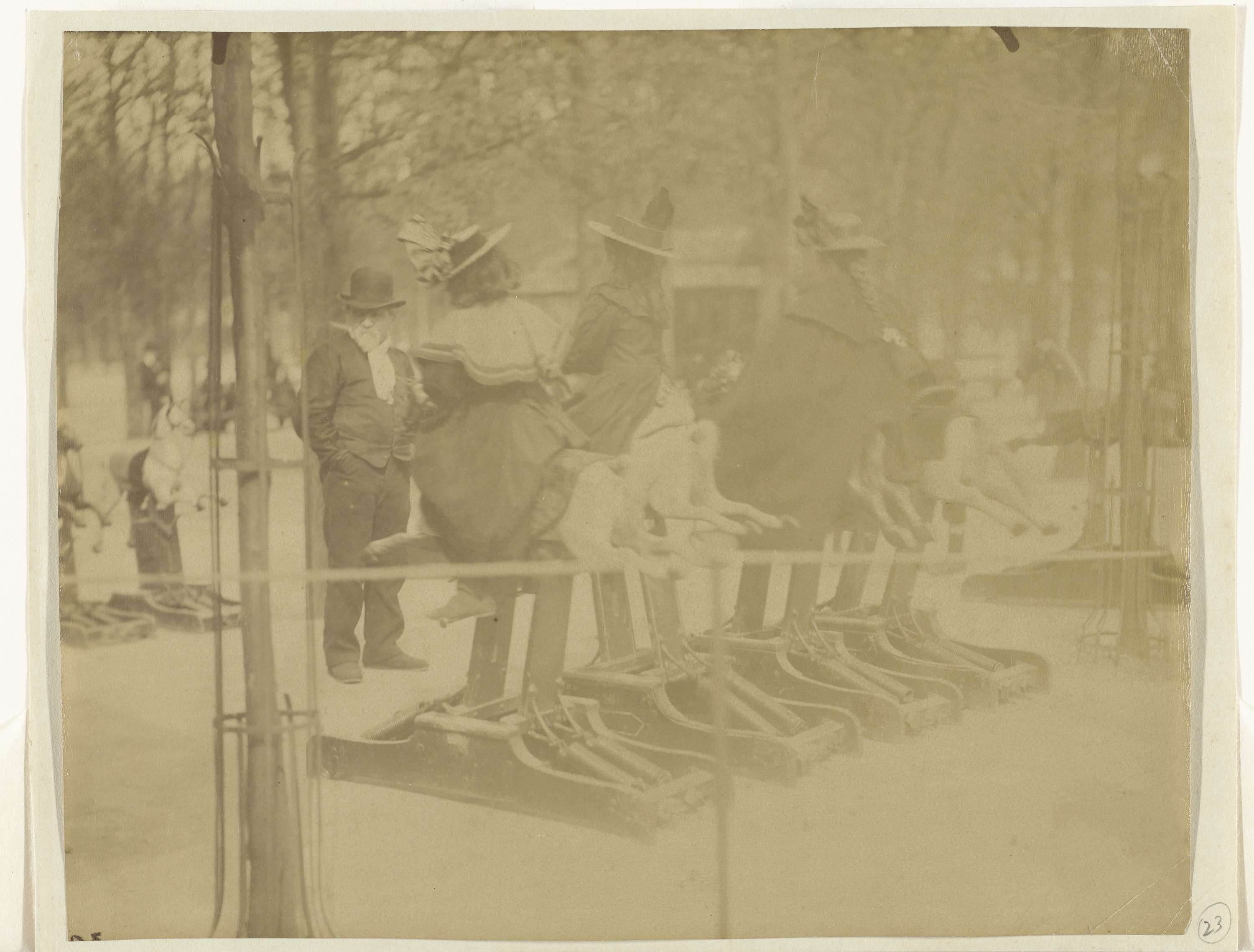 Kinderen op mechanische hobbelpaarden in het Jardin ...