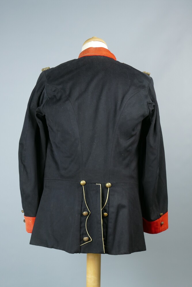 Uniformjas van donkerblauwe en rode wol met schouder...