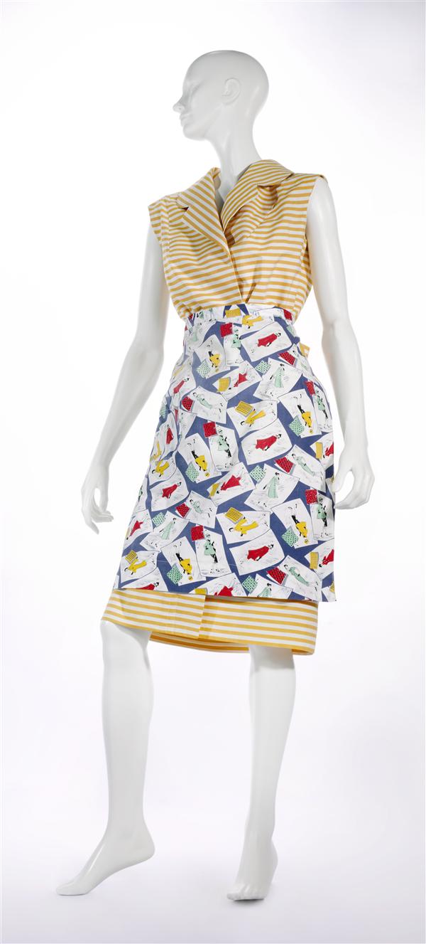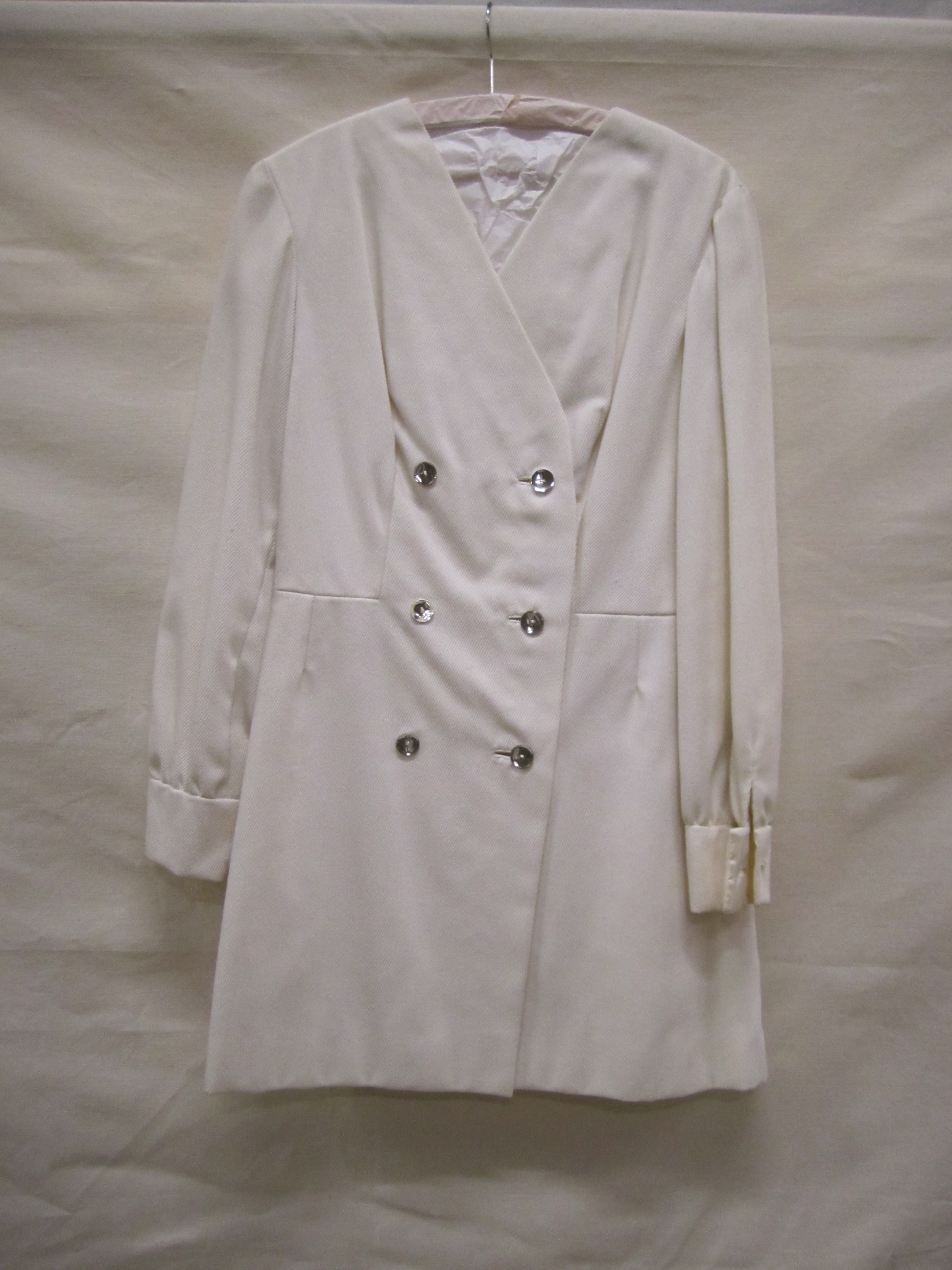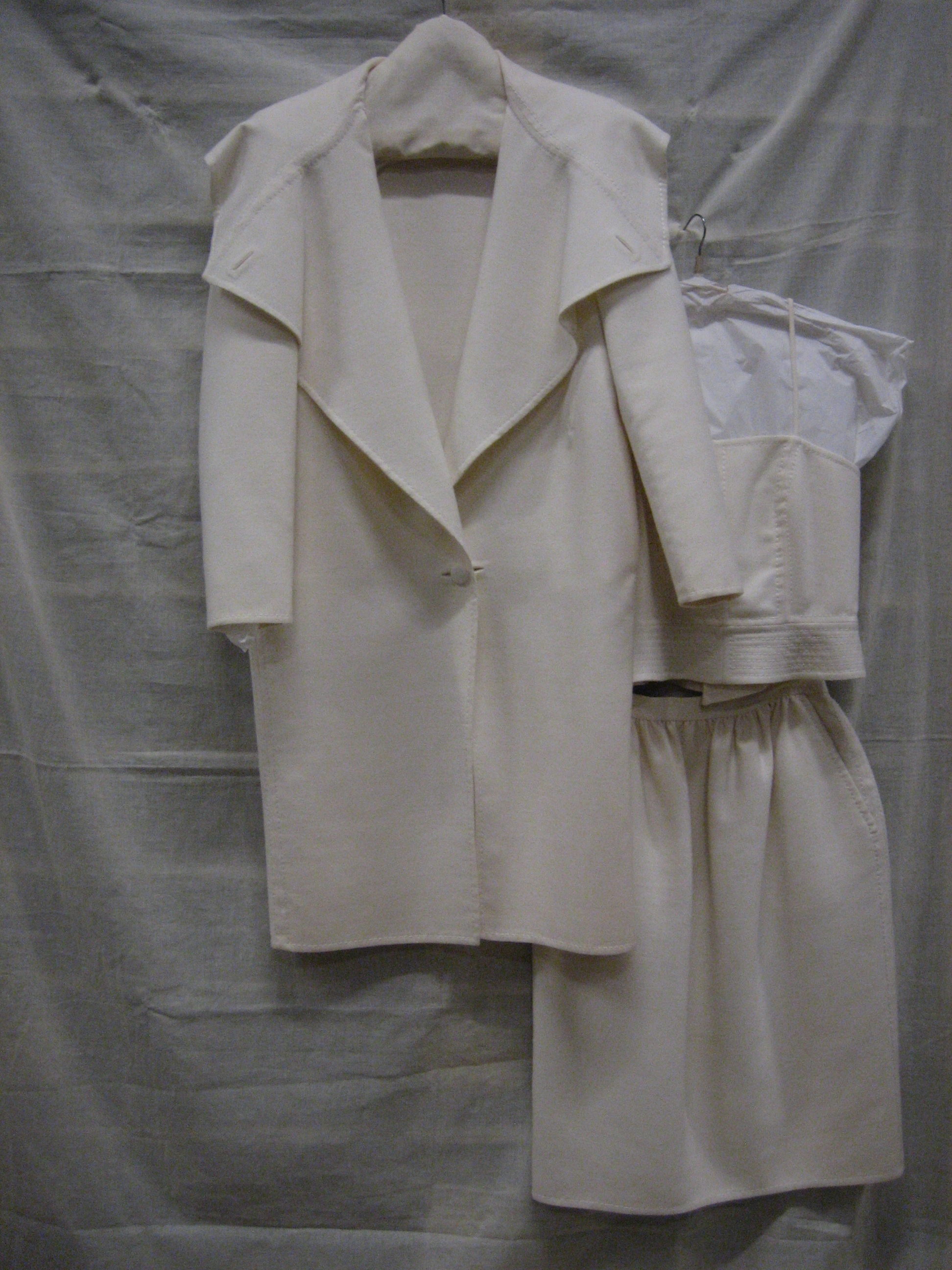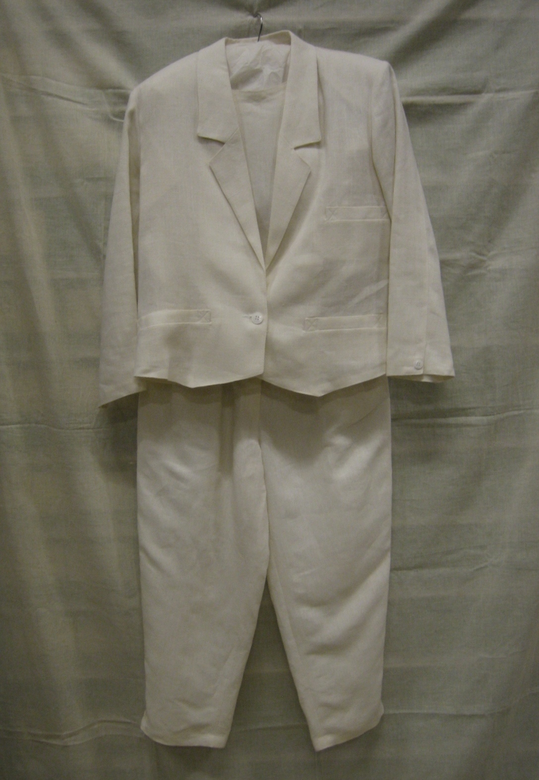 Ensemble van wit linnen, bestaande uit jasje, lange ...