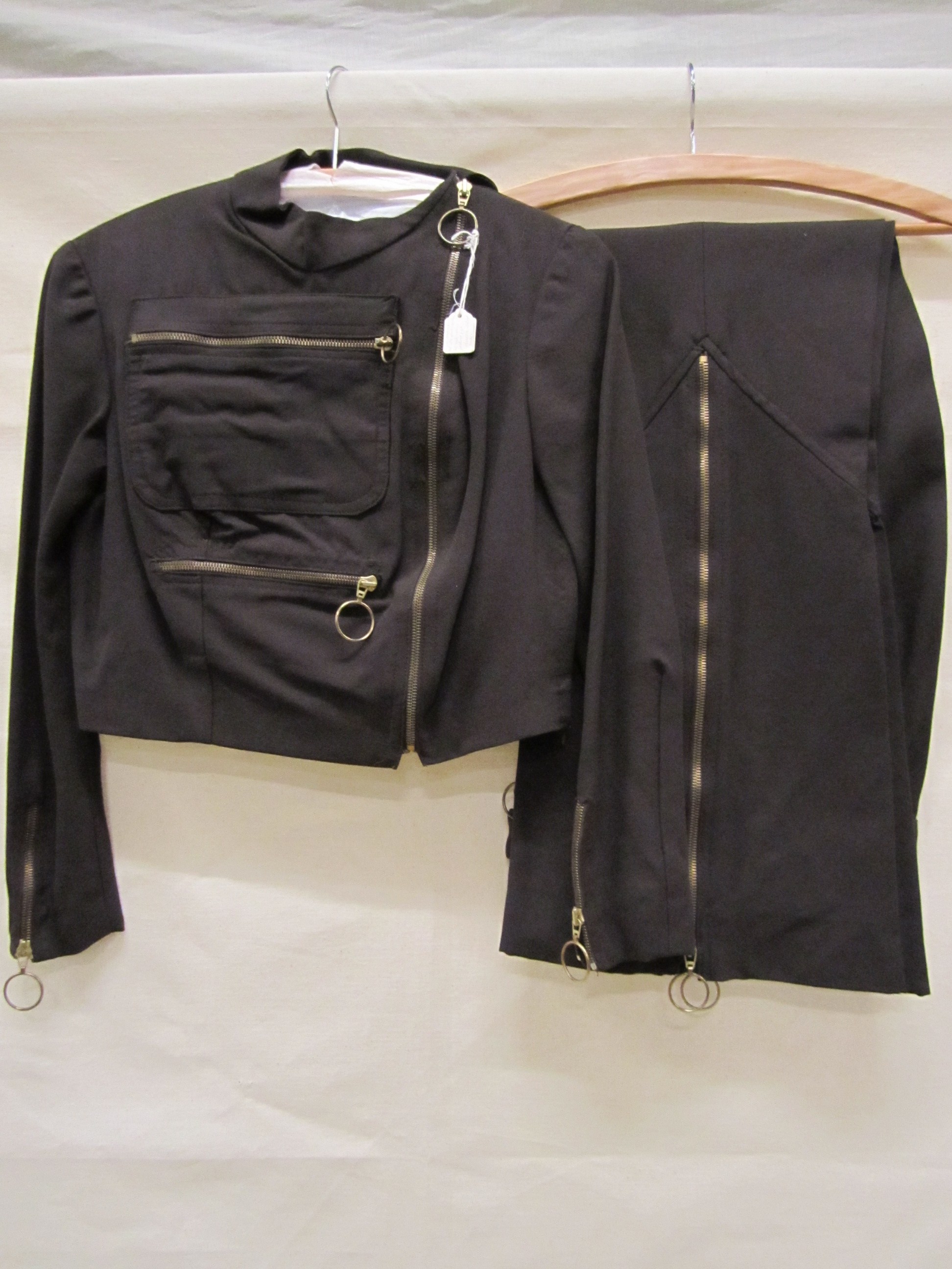 Broekpak van zwarte dubbelgeweven wol, bestaande uit...