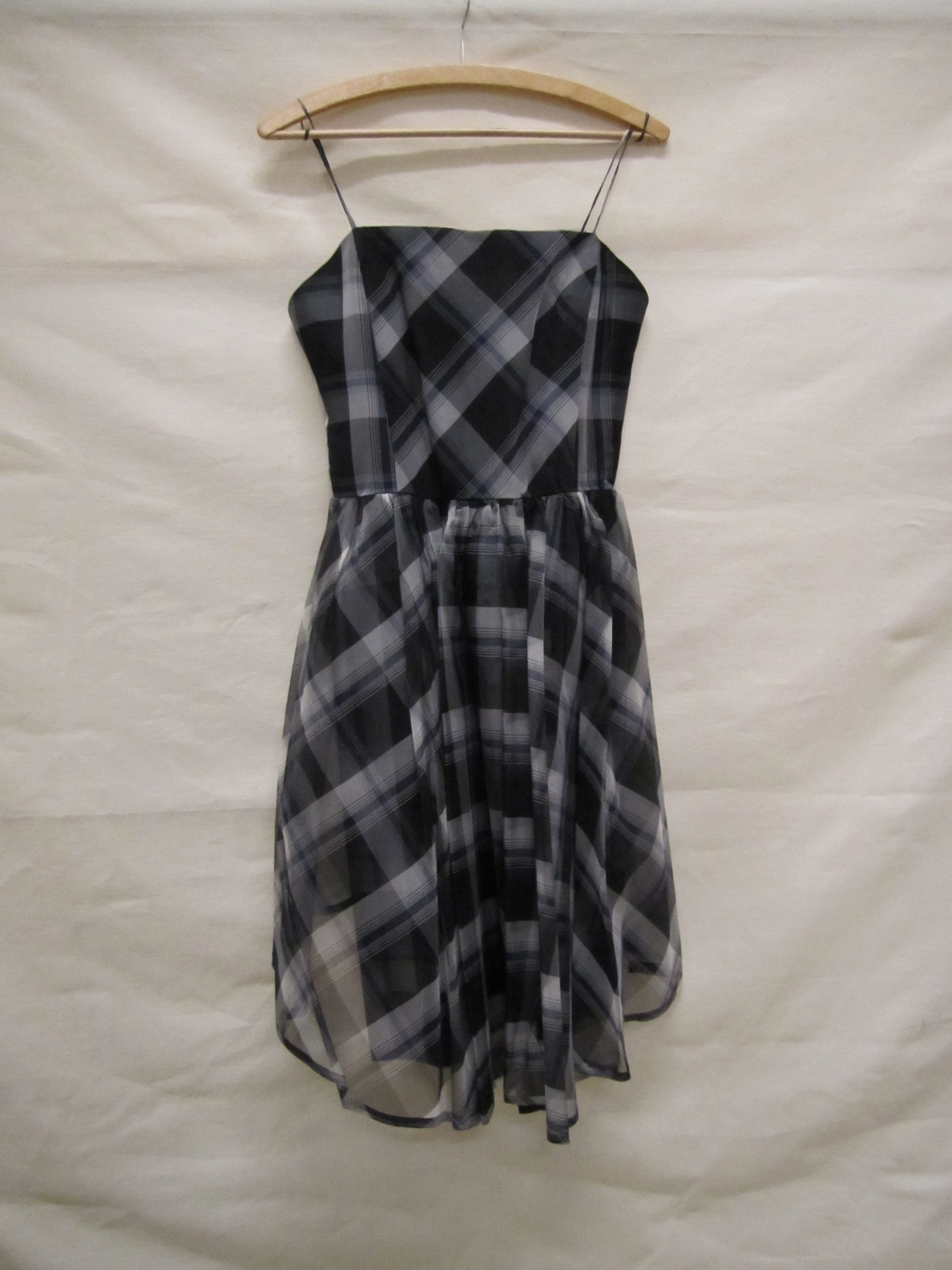 Cocktailjurk van zwart met grijs en wit geruite kuns...