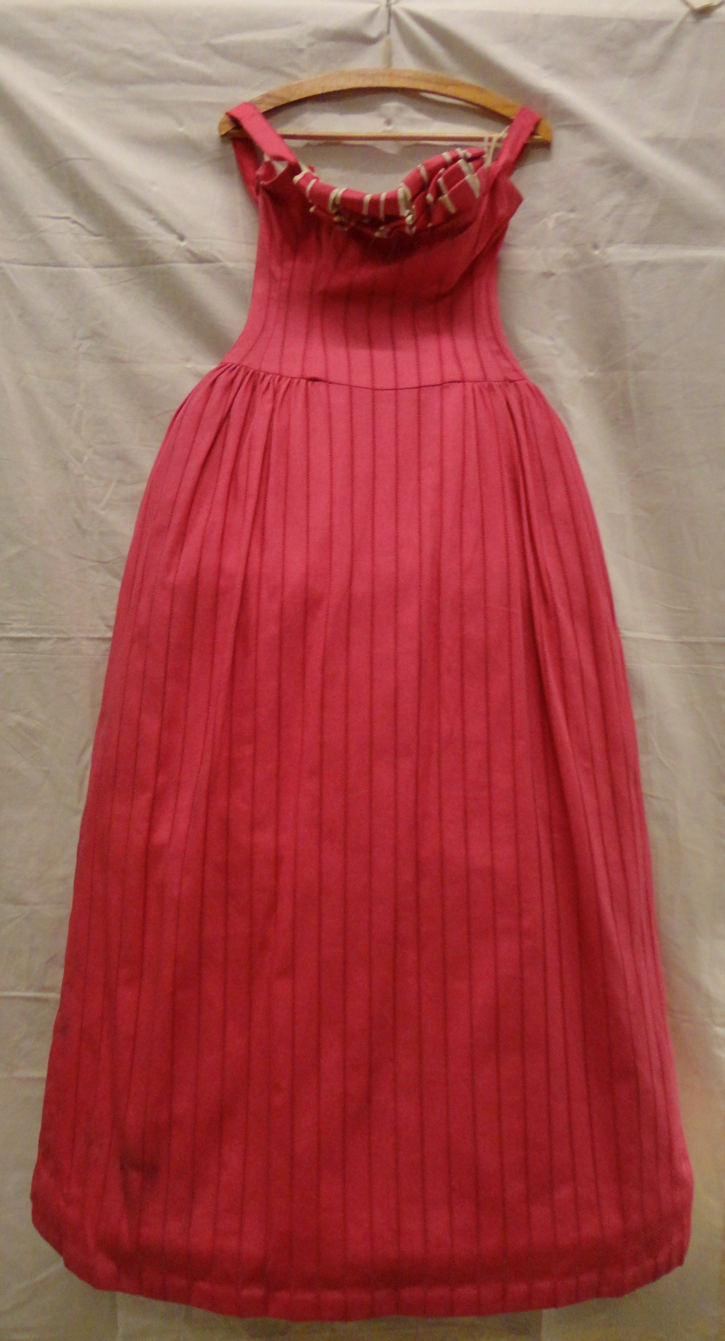 Vest van rode, moiré kunstzijde, mouwloos, lang model