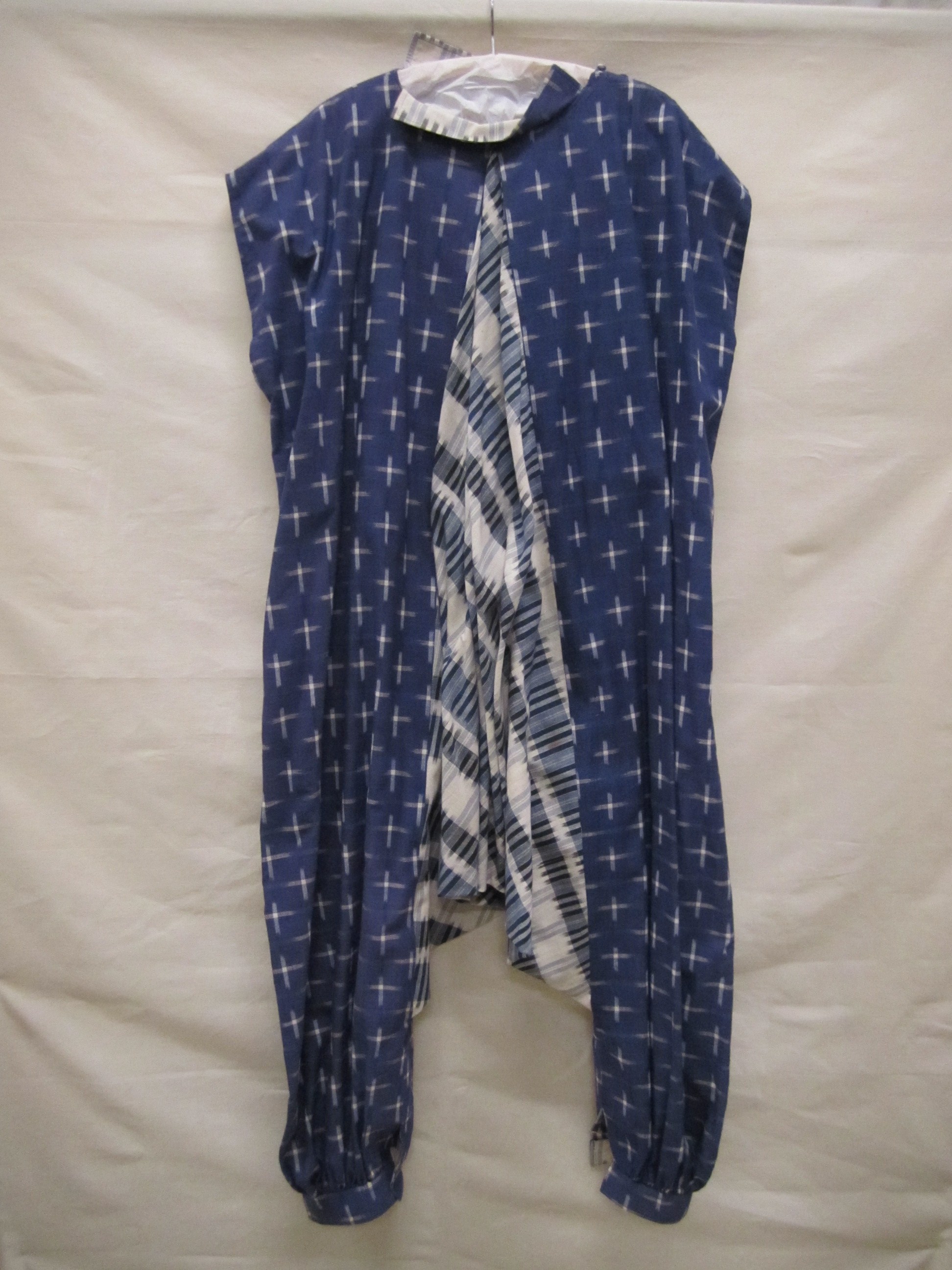Jumpsuit met ceintuur, van blauwe en crèmekleurige k...