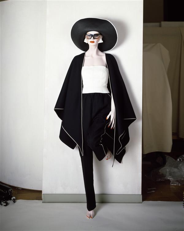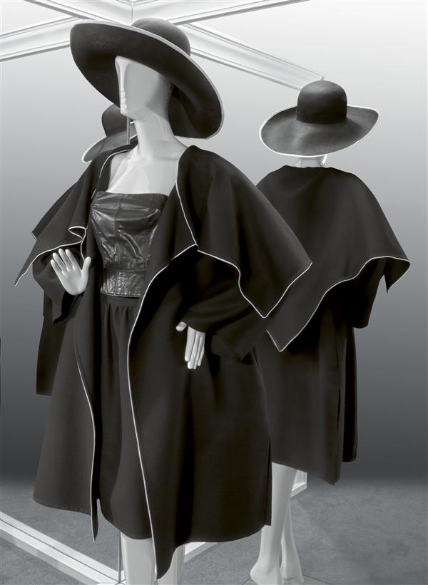 Ensemble van dubbelgeweven, zwarte wol, afgebiesd me...