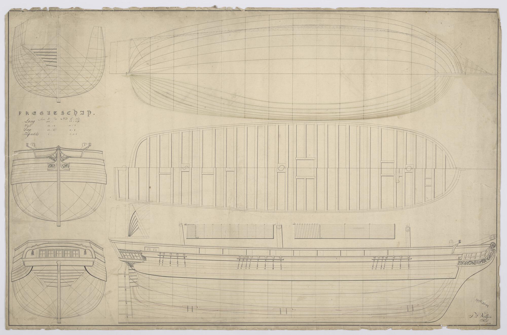 Lijnen- en algemeen plan van een fregat