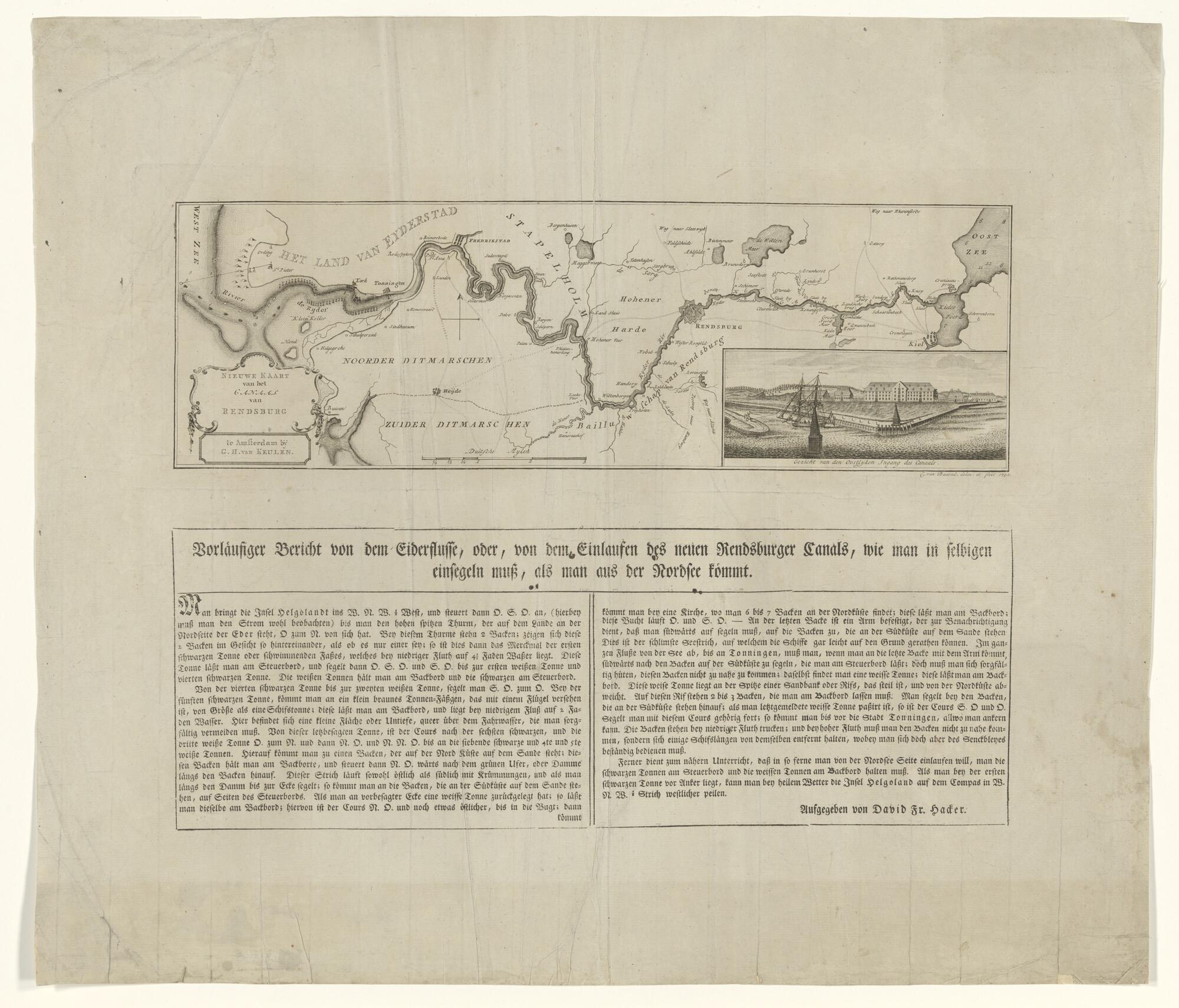 Kaart van het kanaal van Rendsburg, gravure door Cor...
