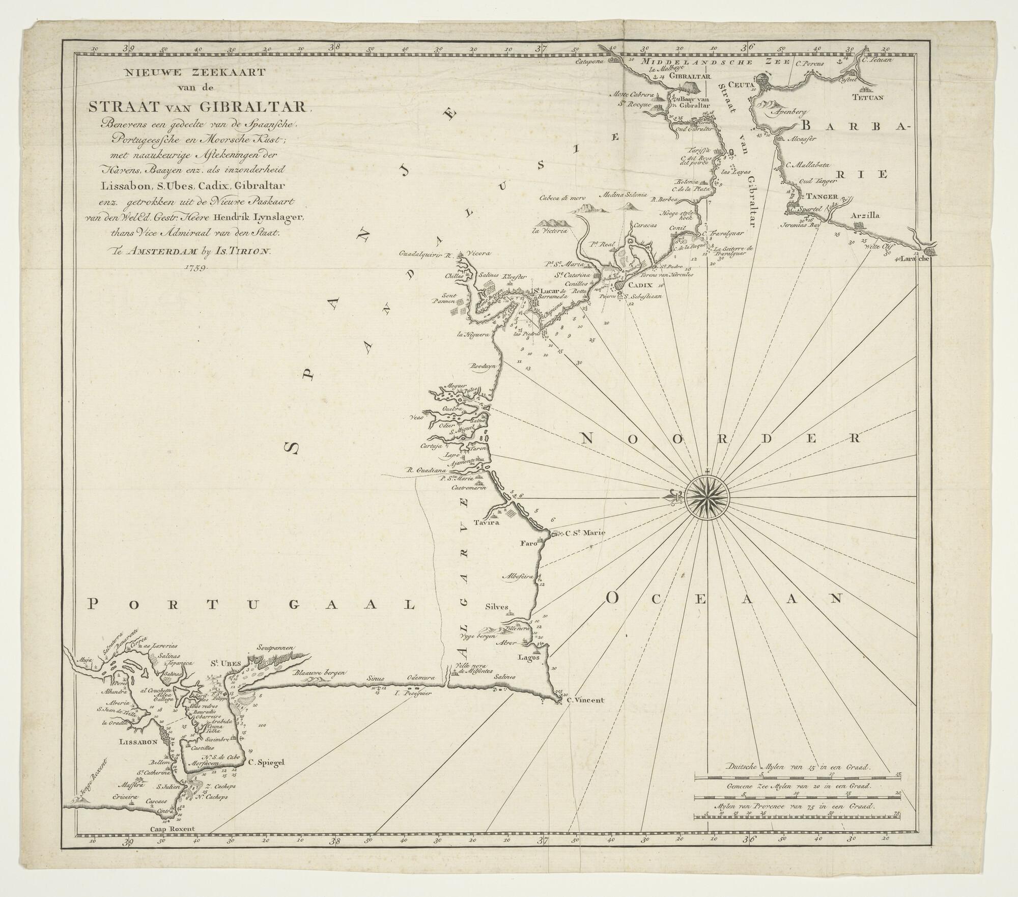 Kaart van de Straat van Gibraltar en een deel van de...