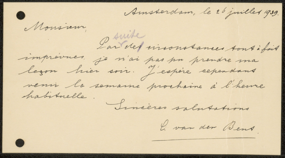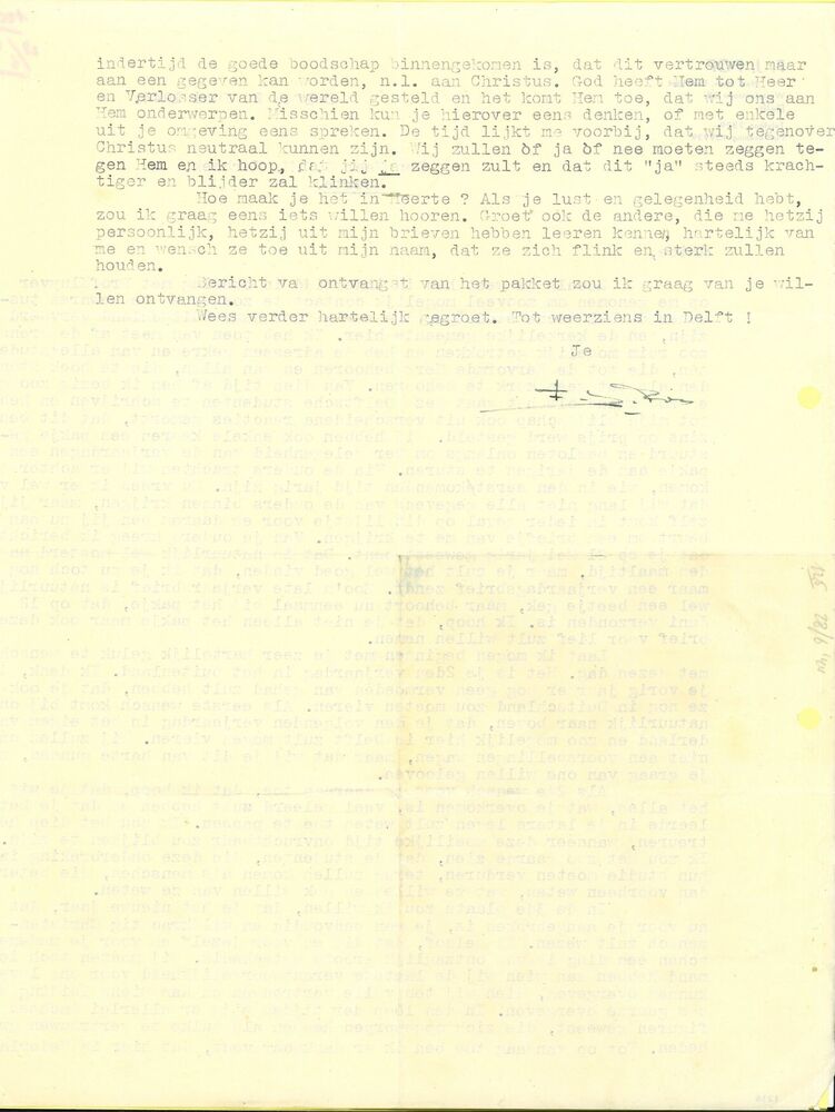 Brief van predikant F.J. Pop in Delft aan Gé Verbeek...