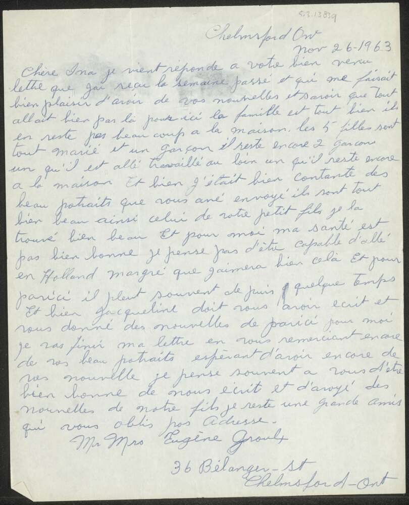 Brief van Mr & Mrs. Eugene Groulx, d.d. 2-6-1963