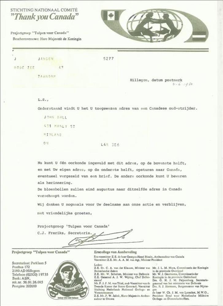 Stichting Nationaal Comité Thank You Canada. bevesti...