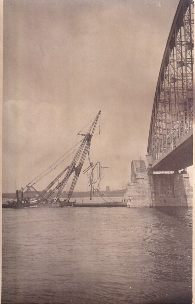 Foto's van de verwoeste Spoorbrug bij Nijmegen en he...