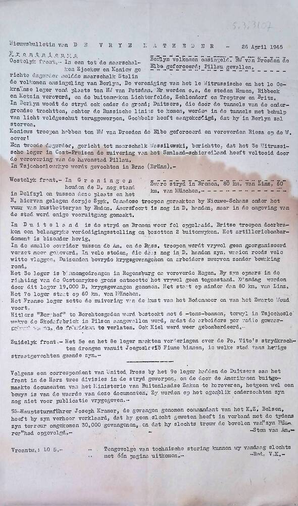 De Vrije Katheder ( Nieuws bulletin), 26 April 1945