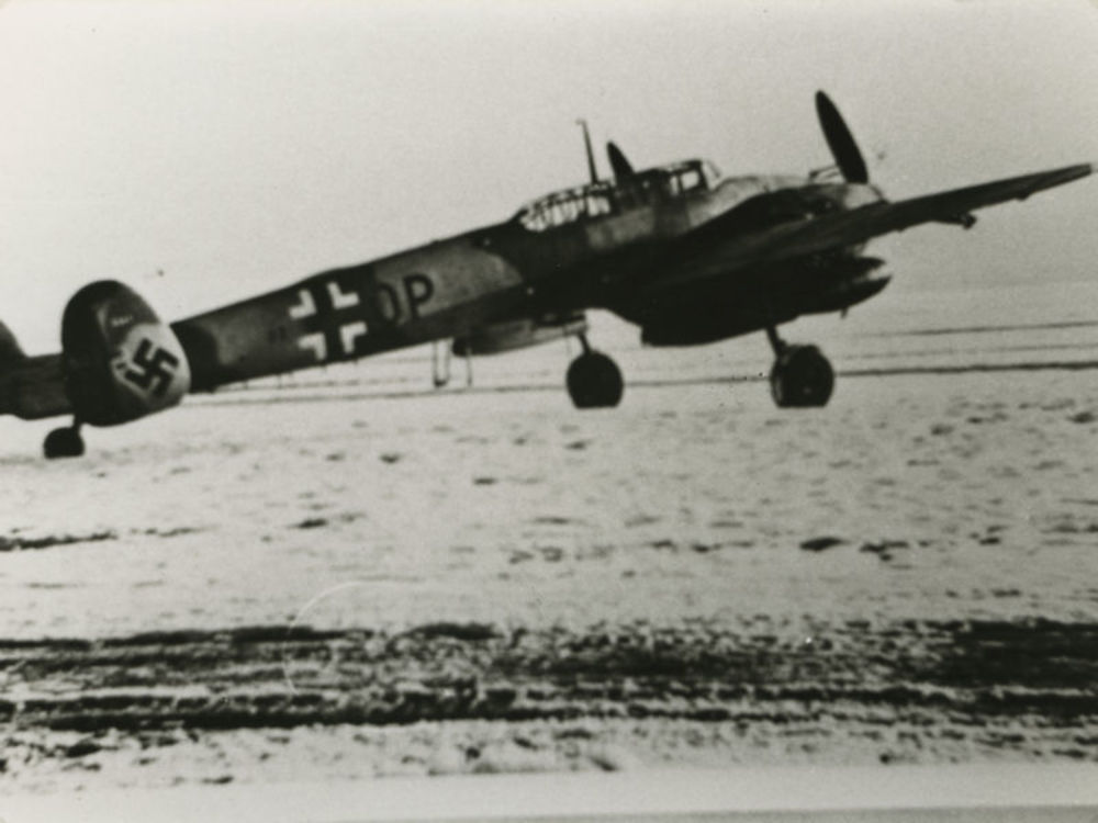Een der bij Wilhelmshaven naar beneden geschoten vli...