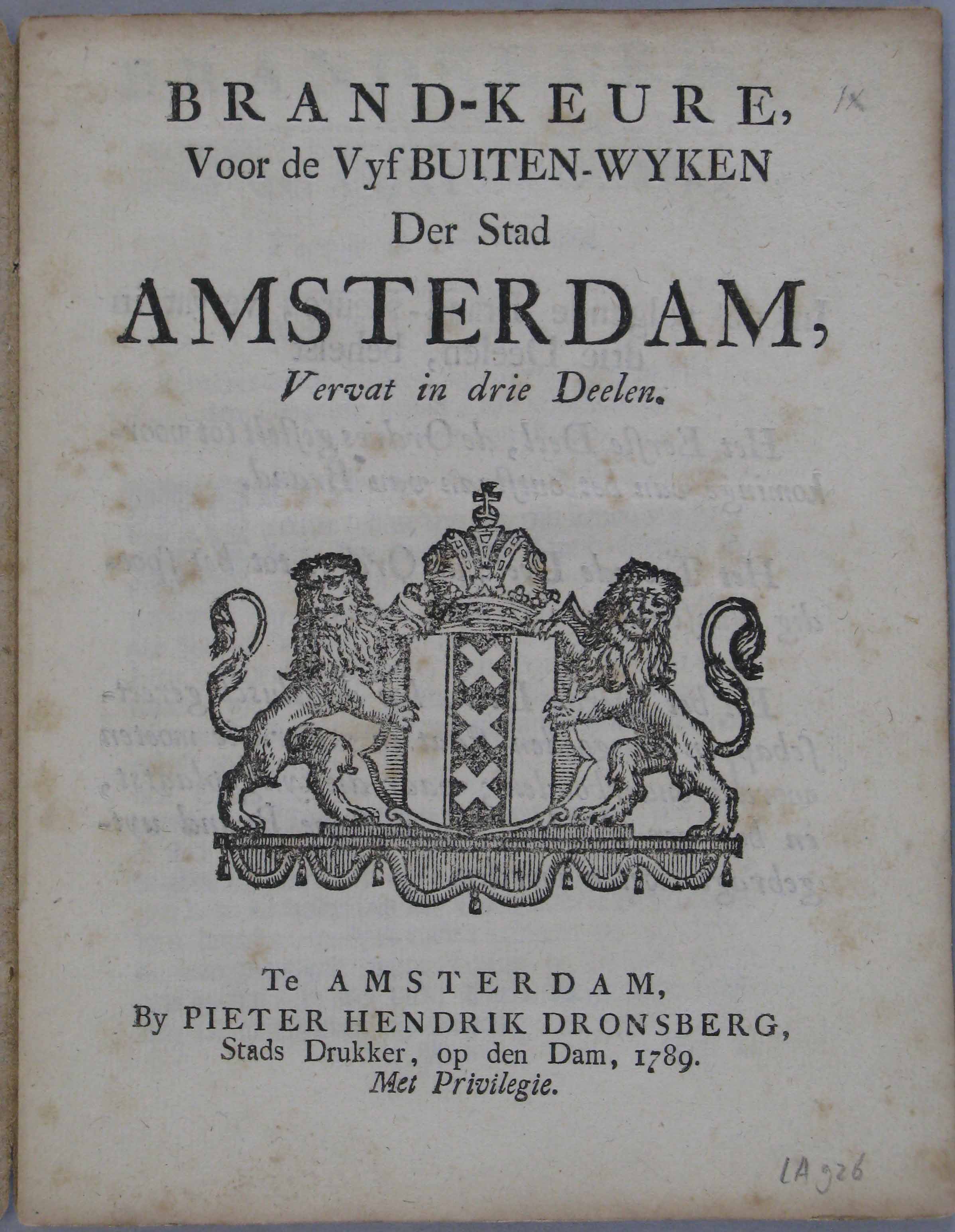 Brand-keure, voor de Vyf Buiten-Wyken der stad Amste...