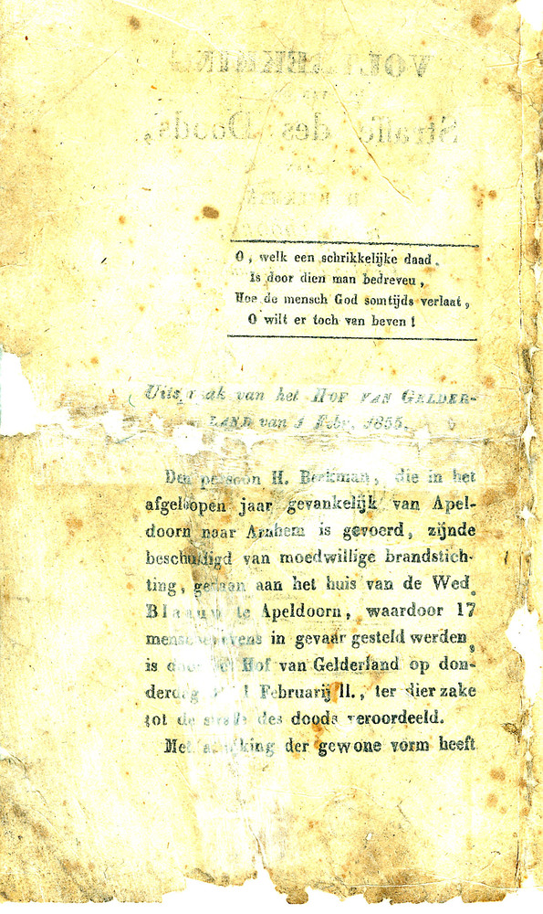 Voltrekking van de straffe des doods aan H. Beekman ...